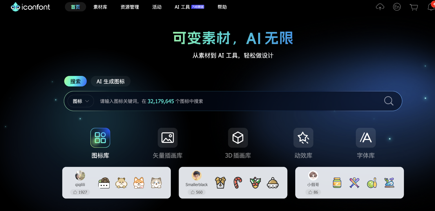 因此,我们需要更多的图标支持,那么我们使用什么组件呢?不需要使用组件。直接下载图标,iconfont这个网站可以搜索你想要的图标进行下载,基本你想到的图标它都有,网站的地址: