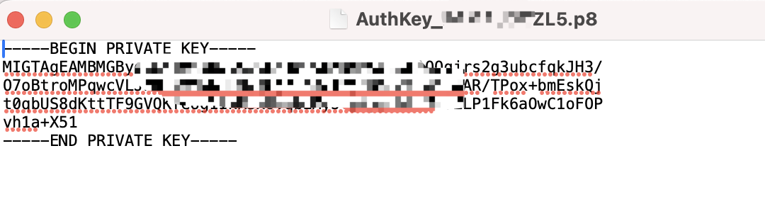 下载好的密钥文件是一个.p8格式的文件